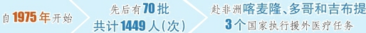 我國開啟援非醫(yī)療事業(yè)以來,我省自1975年開始向非洲派遣醫(yī)療隊,截至目前,先后有70批、共計1449人(次)奔赴非洲的喀麥隆、多哥和吉布提3個國家執(zhí)行援外醫(yī)療任務(wù),多位醫(yī)療隊隊員獲得了受援國政府頒發(fā)的“騎士勛章”“獨立勛章”“杰出貢獻獎”“貢獻獎”“榮譽市民”等國際榮譽。