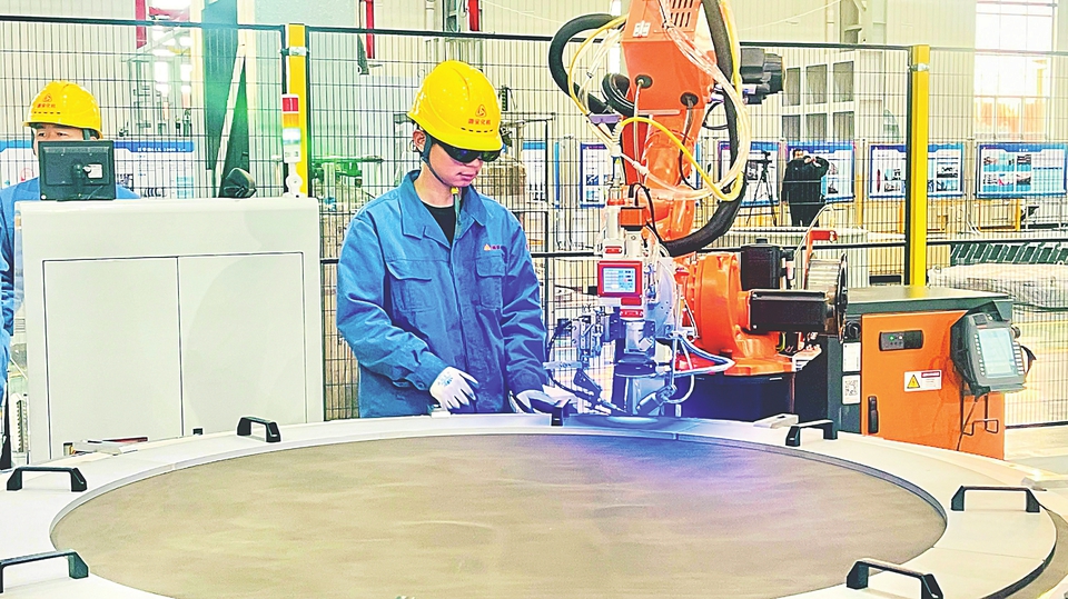 潞安化工機(jī)械(集團(tuán))有限公司新能源裝備分公司,工人正在操作一機(jī)雙工位鎳絲網(wǎng)激光焊接機(jī)。本報(bào)記者王蕾攝
