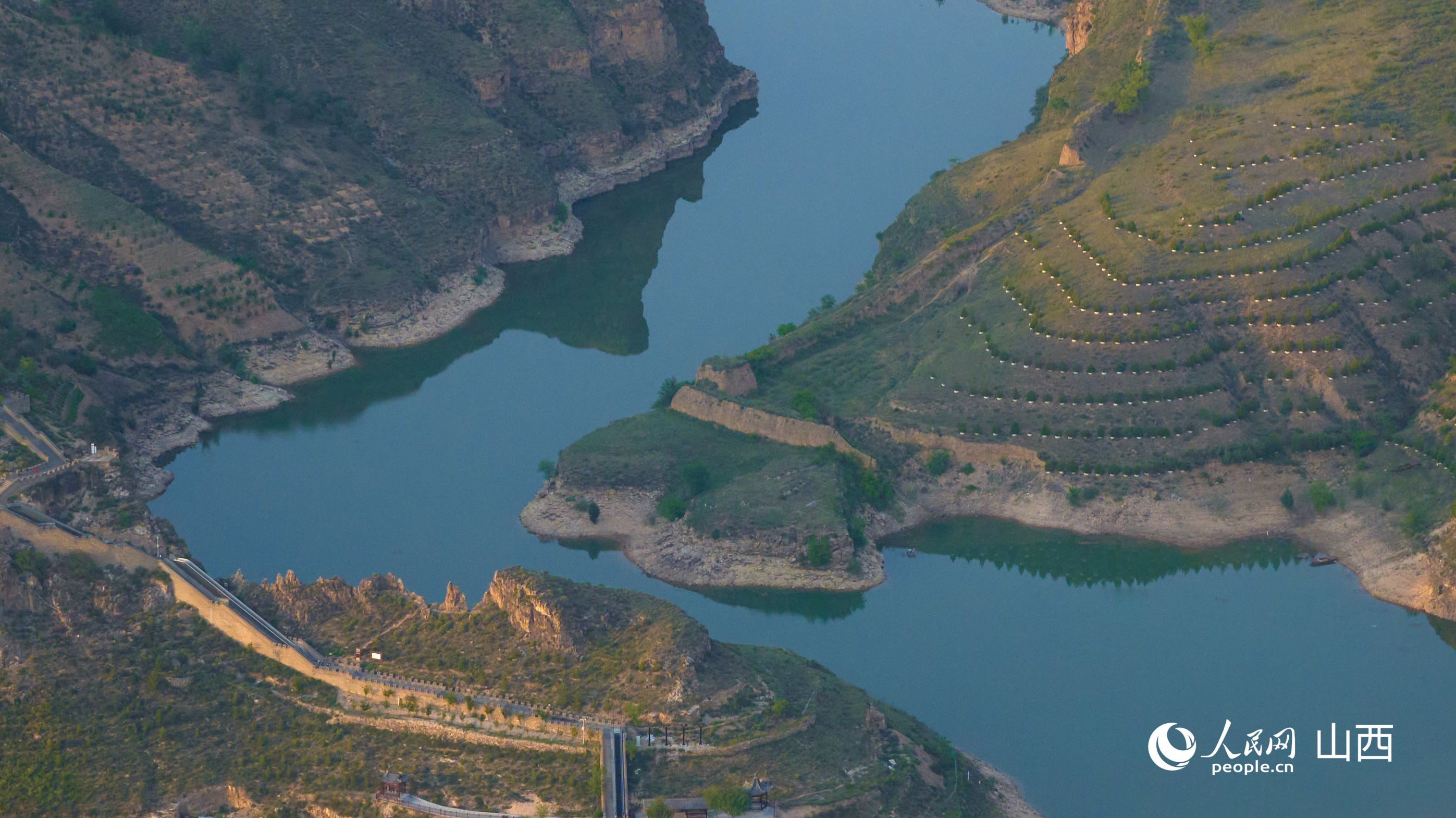 偏關(guān)老牛灣,樹木并肩而立守護(hù)黃河安瀾。人民網(wǎng) 張超寧攝