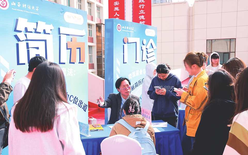 在山西財(cái)經(jīng)大學(xué)2025屆畢業(yè)生春季雙選會(huì)現(xiàn)場(chǎng),學(xué)生們正在聽(tīng)老師分析求職簡(jiǎn)歷中的問(wèn)題(資料圖片)。