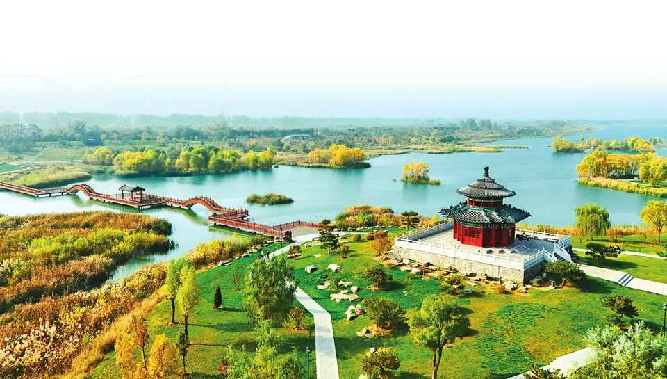 長治市漳澤湖MANA水岸度假區(qū)綠草如茵、碧波蕩漾。張國平攝