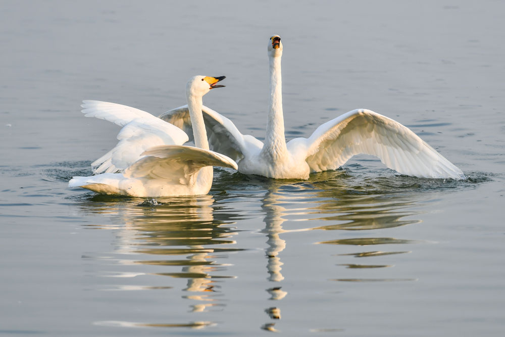 在山西平陸黃河濕地保護(hù)區(qū),一批批來(lái)自西伯利亞的野生大天鵝陸續(xù)飛抵,開(kāi)始越冬。據(jù)悉,自10月底起,大天鵝已開(kāi)始分批抵達(dá)黃河濕地,進(jìn)入12月后數(shù)量明顯增加,目前該區(qū)域觀測(cè)到的越冬天鵝已超5000只,到明年1、2月份可達(dá)上萬(wàn)只。它們悠然自得的身影,為黃河岸畔增添了一道靈動(dòng)的風(fēng)景線。