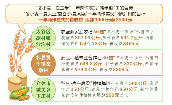 為拓展我省糧食生產(chǎn)空間,挖掘糧食生產(chǎn)潛力,2025年省農(nóng)業(yè)農(nóng)村廳按照“熟化技術、優(yōu)化布局、高效種植、穩(wěn)中求進”的推進思路,遵循“模式因地制宜、面積相對集中、種植高產(chǎn)高效、推廣循序漸進”的原則,在中部地區(qū)完成糧食作物“一年兩作、兩年三作”試驗示范種植面積67190畝,示范了7種模式,取得了各種模式的試驗種植初步結果,篩選了一批適宜品種,優(yōu)化了一批種植模式,集成了一批實用技術,涌現(xiàn)了一批高產(chǎn)典型。這種“向時間要空間”的增產(chǎn)實踐,展現(xiàn)了傳統(tǒng)農(nóng)區(qū)挖掘糧食生產(chǎn)新潛力的現(xiàn)實路徑與勃勃生機。 政策支撐 送上“定心丸” 1月6日,陽泉市平定縣巨城鎮(zhèn)上盤石村,連片種植的冬小麥在冬日的田野上呈現(xiàn)出頑強的青綠,陽泉市偉業(yè)農(nóng)業(yè)有限公司負責人王春貴在地里察看冬小麥的生長情況,他說:“2025年我們進行了冬小麥—夏玉米一年兩作試驗種植,項目區(qū)小麥、玉米都實現(xiàn)了提質(zhì)增效,農(nóng)民收入也增加了,今年我們還打算這樣干?!?/p> 任何一場農(nóng)業(yè)生產(chǎn)方式的變革,都需要政策的“第一推動力”。面對“一年兩作、兩年三作”可能帶來的投入增加、技術風險和茬口緊張,我省構筑了一套務實精準的政策組合拳。 頂層設計與責任傳導,確保了“一張藍圖繪到底”。省農(nóng)業(yè)農(nóng)村廳2025年初組織召開全省中部地區(qū)糧食作物“一年兩作、兩年三作”種植模式推進會,進行全面部署;秋收前再辦培訓班,進行再動員、再安排。建立“省級統(tǒng)籌、市級協(xié)調(diào)、縣鄉(xiāng)落實”的工作機制,將任務層層分解,責任壓緊壓實。晉中市將省農(nóng)業(yè)農(nóng)村廳下達的4萬余畝任務細化到太谷、祁縣、介休三縣(區(qū)、市),并召開現(xiàn)場會,由分管副市長親自督戰(zhàn)。這種高位推動與閉環(huán)管理,避免了政策“空中樓閣”,確保了相關政策在基層落地生根。 真金白銀的補貼直接降低了試種門檻。省級財政明確對示范種植每畝補助300元,對試驗種植每畝補助500元。這筆錢,如同及時雨。太谷區(qū)胡村鎮(zhèn)沙溝村種植大戶張大爺坦言:“多種一季,種子、肥料、機耕投入都要增加,剛開始心里確實打鼓。有了補貼,相當于給咱農(nóng)戶兜了個底,膽子就大了。”市縣級財政也積極跟進,太原市100萬元、長治市160萬元資金用于支持“一年兩作、兩年三作”種植試驗示范工作,沁縣更是將示范補貼提高到每畝500元。 風險保障的跟進,撐起了抵御天災的“保護傘”。農(nóng)業(yè)“看天吃飯”的特性,在復種模式下風險疊加。2026年,我省農(nóng)業(yè)農(nóng)村部門積極對接保險機構,推動開發(fā)針對多熟制種植的特色農(nóng)業(yè)保險產(chǎn)品;中部地區(qū)“一年兩作、兩年三作”種植面積擴大到10萬畝以上,按照光熱資源、灌溉條件等情況,進一步優(yōu)化區(qū)域布局,形成政策疊加效應。 包聯(lián)服務 精準提效能 好政策還需好的執(zhí)行,復雜技術更需要貼身指導?!耙荒陜勺?、兩年三作”對品種搭配、茬口銜接、水肥管理的精準度要求極高,絕非下發(fā)文件、提供種子就能成功。我省創(chuàng)新性地建立起全覆蓋、網(wǎng)格化的包聯(lián)服務機制,讓農(nóng)技力量真正沉下去,成為農(nóng)戶身邊最可靠的“田參謀”。 省級層面舉辦了3期專題技術培訓,線下線上結合,全省各級累計培訓指導超5000人次,為基層培育了一批“技術明白人”。 專家團隊“一對一”,破解技術梗阻。省農(nóng)技推廣中心組建了專門的技術指導組,省市縣專家三級聯(lián)動,實行“一個模式一個專隊,包縣包村包主體”。在祁縣西六支村的試驗田,技術員們從秋播到秋收,往地里跑了不下二十趟?!靶←準裁磿r候防‘倒春寒’,玉米最晚哪天必須播下去,大豆怎么防癥青,都是專家們手把手教?!睂τ趯<覀兊念l頻造訪,農(nóng)民交口稱贊。 服務內(nèi)容“精準滴灌”,對接多樣化需求。包聯(lián)服務根據(jù)區(qū)域條件和主體特點量身定制。在光熱充足的汾陽、交城灌區(qū),重點指導“冬小麥—夏玉米”模式下的高產(chǎn)節(jié)水技術;在無霜期稍短的太谷、祁縣丘陵區(qū),則著重推廣“冬小麥—夏大豆”或“春玉米—冬小麥—夏玉米”等適配模式,并配套旱作保墑技術。陽泉市平定縣的技術指導組通過精細試驗,為當?shù)剞r(nóng)戶精準卡定了小麥最晚播期(10月25日)和玉米最晚播期(6月25日)。這種“保姆式”服務,確保了每個關鍵農(nóng)時環(huán)節(jié)都有科學方案。 社會化服務“提效能”,化解勞力與技能短缺。復種模式農(nóng)時緊迫,對機械化和社會化服務依賴度極高。政策與服務引導相融合,我省大力推廣機收減損、免耕直播、秸稈還田、無人機“一噴多促”等高效集成技術,為農(nóng)民省時、省事、省力、省錢。 小麥收獲季,在介休市的連片示范田,小麥機收與玉米播種無縫銜接,“留高茬”收割與旋耕播種一體機聯(lián)合作業(yè),極大縮短了時間。“以前靠人工,收完麥子再種玉米,得十來天,現(xiàn)在兩三天就全搞定。”合作社的農(nóng)機手李小剛對此感受頗深。 效益凸顯 加快集約化 一切技術的探索、政策的投入、服務的付出,最終都要接受效益的檢驗?!耙荒陜勺?