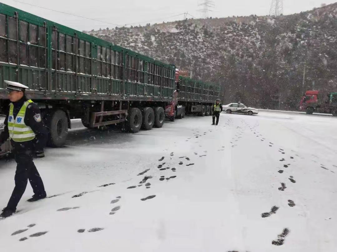 11月6日,轄區(qū)出現(xiàn)降雪天氣,部分路面積雪結(jié)冰。為了預(yù)防和減少道路交通事故,偏關(guān)縣公安局交警大隊(duì)在重點(diǎn)濕滑路段加派警力,對(duì)行駛車輛進(jìn)行交通疏導(dǎo)。