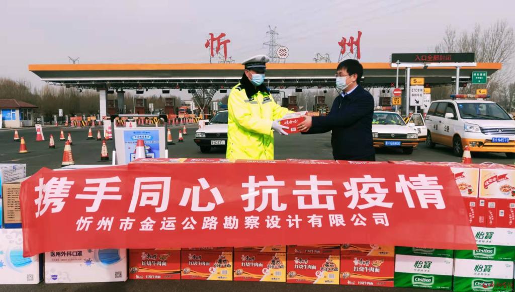 2月28日,忻州市金運(yùn)公路勘察設(shè)計有限公司董事長李華,帶領(lǐng)公司員工,向忻州市和平路高速路口、主要防控區(qū)街道口和多個社區(qū)的抗疫一線工作人員送去了防疫物資等(75%酒精消毒液、一次性醫(yī)用外科口罩、體溫槍、一次性醫(yī)用橡膠手套、純凈水、方面面、八寶粥),為辛勤值守在防疫一線的公安交警、醫(yī)護(hù)人員、志愿者帶去了溫暖和關(guān)懷。