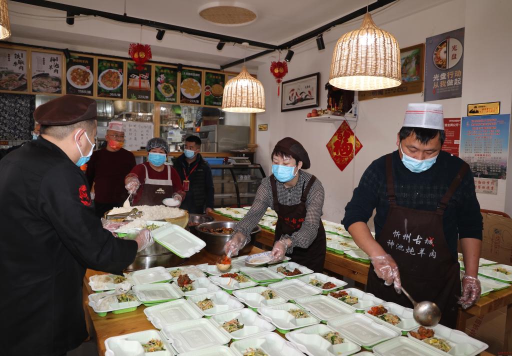 “自疫情發(fā)生以來,我們忻府區(qū)招待所每天都會為一線人員送飯,但是聽到有商家要送愛心午餐時(shí),我們還是想著先給醫(yī)護(hù)人員,給他們換換口味。所以古城運(yùn)營公司聯(lián)系了我們以后,我們就決定將這份愛心午餐優(yōu)先發(fā)放給前來咱忻府區(qū)支援的原平的醫(yī)護(hù)人員。”秀容街道辦事處主任侯東生在接受采訪時(shí)說。