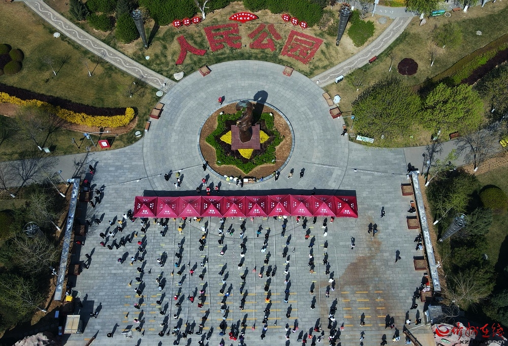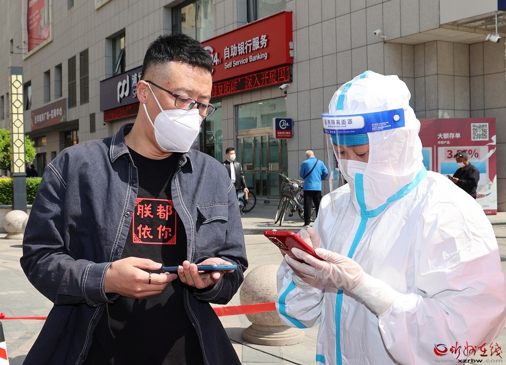 “我們城南區(qū)域設(shè)置了6個核酸檢測點,許多黨員志愿者主動請纓、投身疫情防控一線,用實際行動展現(xiàn)了黨員的責(zé)任和擔(dān)當(dāng)?!痹诩t旗廣場檢測點,南城辦黨工委書記張斌拿著小喇叭,在隊伍中間來回穿梭,指揮志愿者引導(dǎo)市民分批次、分時段有序檢測,防止人員扎堆聚集,避免交叉感染。