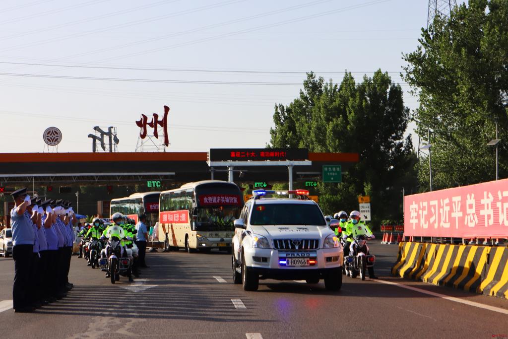 5月30日的忻州大地,花紅葉綠,綠樹成蔭。英雄歸來,全城致敬。40多輛警用摩托,閃著雙閃,全程護(hù)航。各界群眾拉起橫幅,手拿小紅旗,夾道相迎,為英雄接風(fēng)……忻州以最高禮遇迎候醫(yī)療隊凱旋。