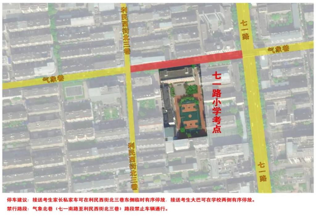停車(chē)建議:接送考生家長(zhǎng)私家車(chē)可在利民西街北三巷東側(cè)臨時(shí)有序停放,接送考生大巴可在學(xué)校兩側(cè)有序停放。