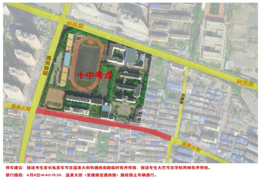 禁行路段:6月8日14:40-15:30,溫泉大街(安康路至通崗路)路段禁止車(chē)輛通行。