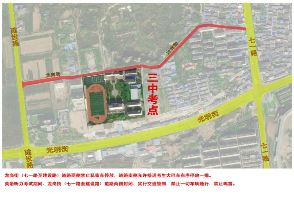 英語(yǔ)聽(tīng)力考試期間,龍崗街(七一路至建設(shè)路)道路兩側(cè)封閉,實(shí)行交通管制,禁止一切車(chē)輛通行,禁止鳴笛。