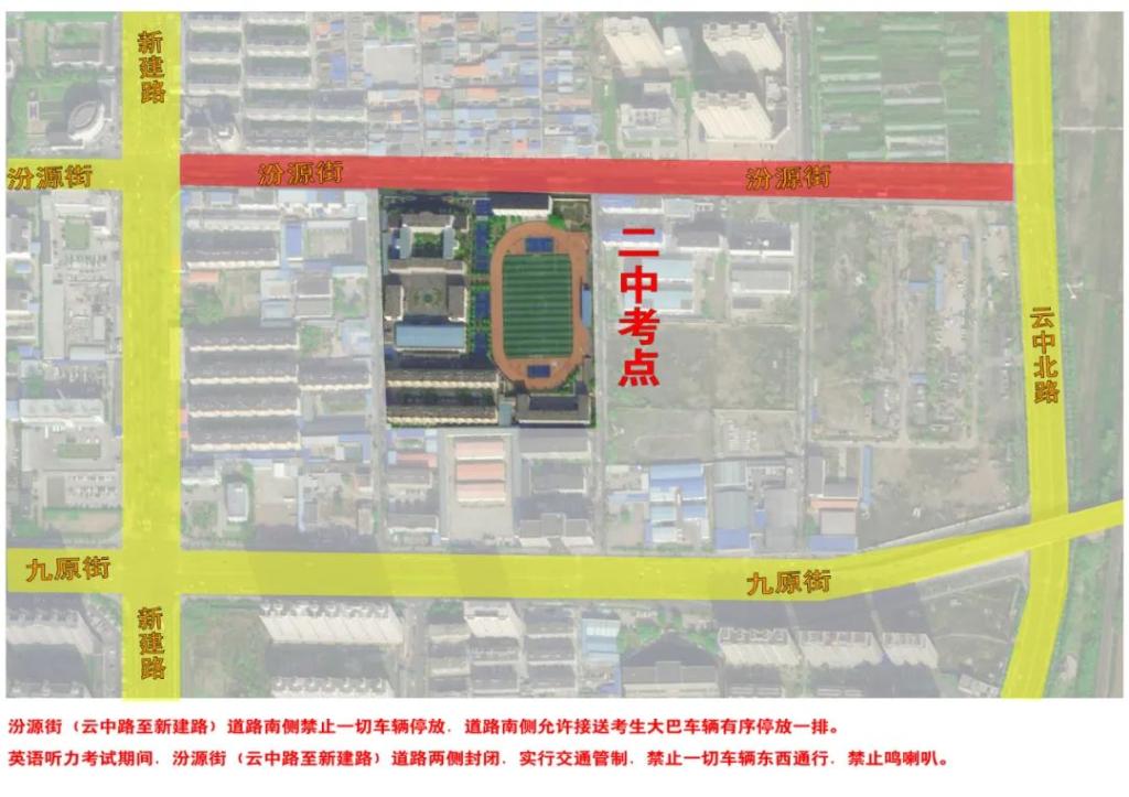 英語(yǔ)聽(tīng)力考試期間,汾源街(云中路至開(kāi)發(fā)西街南二巷)道路兩側(cè)封閉,實(shí)行交通管制,禁止一切車(chē)輛東西通行,禁止鳴喇叭。