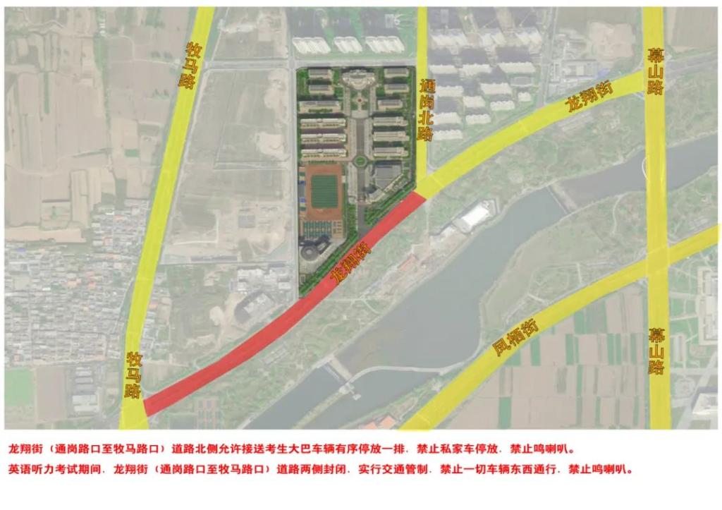 禁行路段:英語(yǔ)聽(tīng)力考試期間,龍翔街(通崗路口至牧馬路口)道路兩側(cè)封閉,實(shí)行交通管制,禁止一切車(chē)輛東西通行,禁止鳴喇叭。
