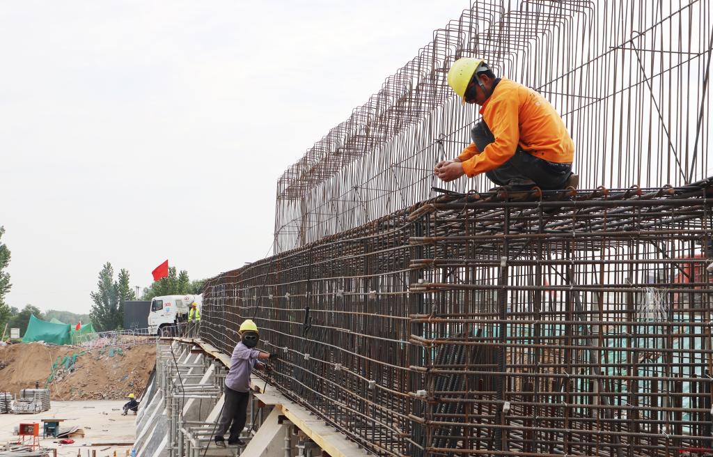 連日來(lái),我市持續(xù)高溫天氣,地面溫度高達(dá)37攝氏度,暑氣蒸騰,酷熱難耐。走進(jìn)城東片區(qū)新建道路、管網(wǎng)工程及城區(qū)道路智慧停車位建設(shè)PPP項(xiàng)目建設(shè)施工現(xiàn)場(chǎng),一股熱火朝天的大干熱潮撲面而來(lái),炙熱的梁板、燙手的鋼筋、捂汗的安全帽......每天大約有1000多名工人頭頂烈日,揮汗如雨,堅(jiān)守在崗位上,與暑熱較勁,確保工程建設(shè)各項(xiàng)工作有條不紊進(jìn)行,確保工程節(jié)點(diǎn)工期如期完成。