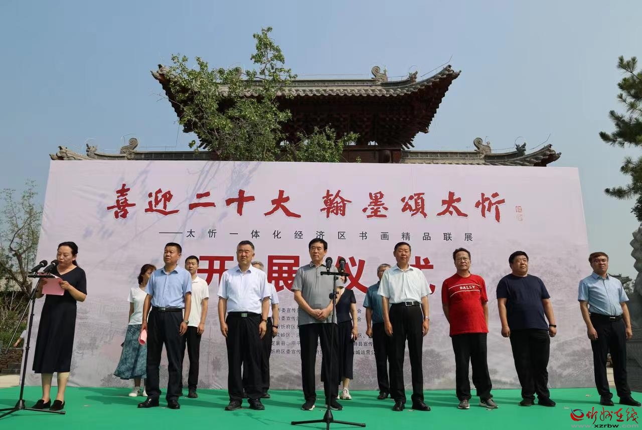 8月6日,“喜迎二十大,翰墨頌太忻”太忻一體化經濟區(qū)書畫精品聯(lián)展在忻州古城西園正式開展。市委宣傳部、忻府區(qū)政府等相關部門負責人,太原市杏花嶺區(qū)、萬柏林區(qū)等區(qū)(縣)文聯(lián)、書協(xié)、美協(xié),忻州市書協(xié)、美協(xié),忻府區(qū)文聯(lián),忻州古城運營公司等相關負責人參加。