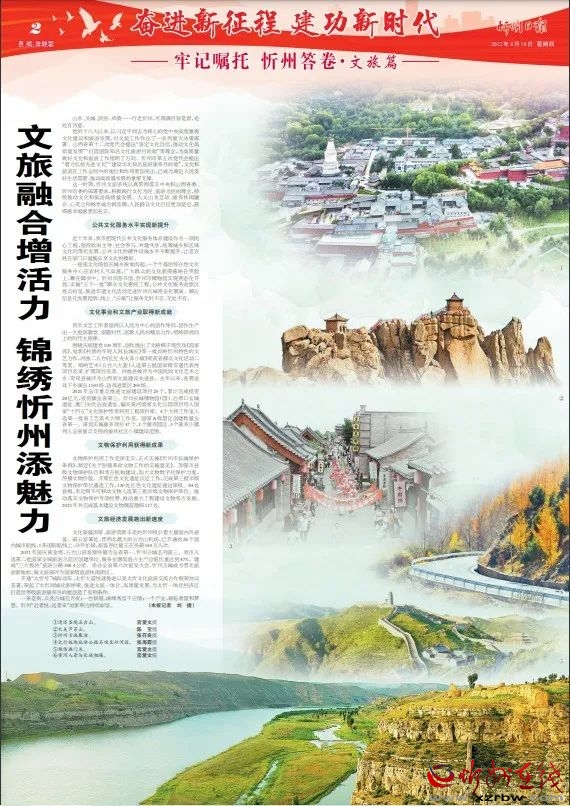 黨的十八大以來,以習(xí)近平同志為核心的黨中央高度重視文化建設(shè)和旅游發(fā)展,對(duì)文旅工作作出了一系列重大決策部署。山西省第十二次黨代會(huì)提出“堅(jiān)定文化自信,推動(dòng)文化高質(zhì)量發(fā)展”“打造國際知名文化旅游目的地”等理念,為高質(zhì)量做好文化和旅游工作指明了方向。忻州市第五次黨代會(huì)提出“著力弘揚(yáng)先進(jìn)文化”“建設(shè)華北知名旅游康養(yǎng)目的地”,文化和旅游在工作全局中的地位和作用更加突出,已成為滿足人民美好生活需要、推動(dòng)高質(zhì)量發(fā)展的重要支撐。