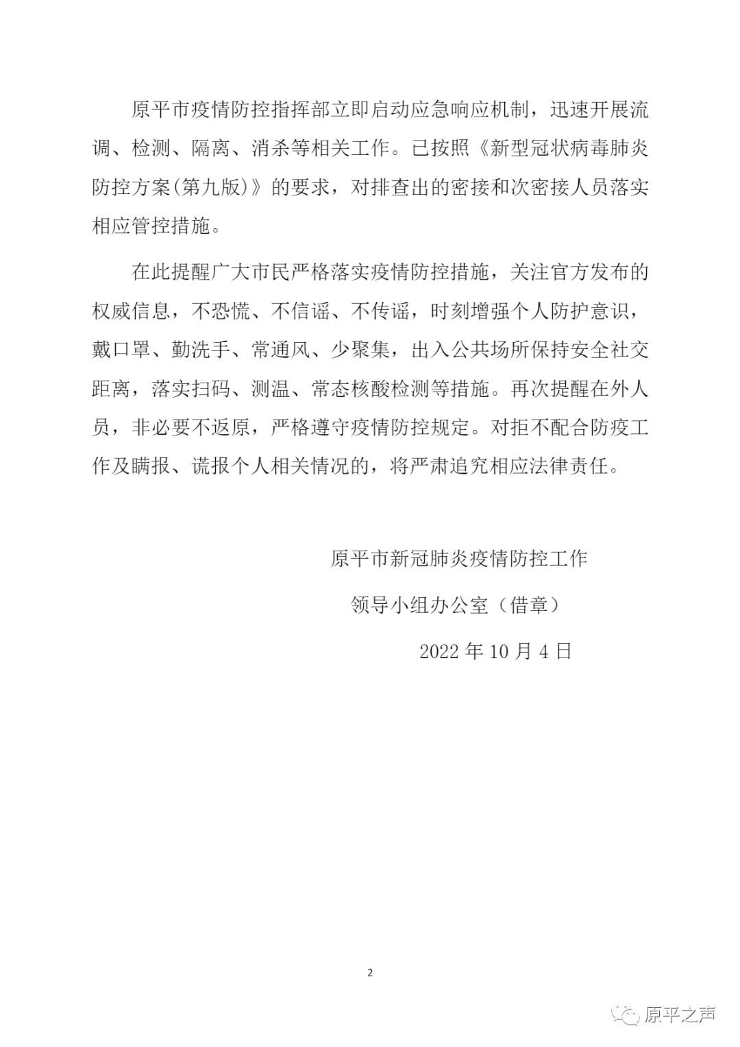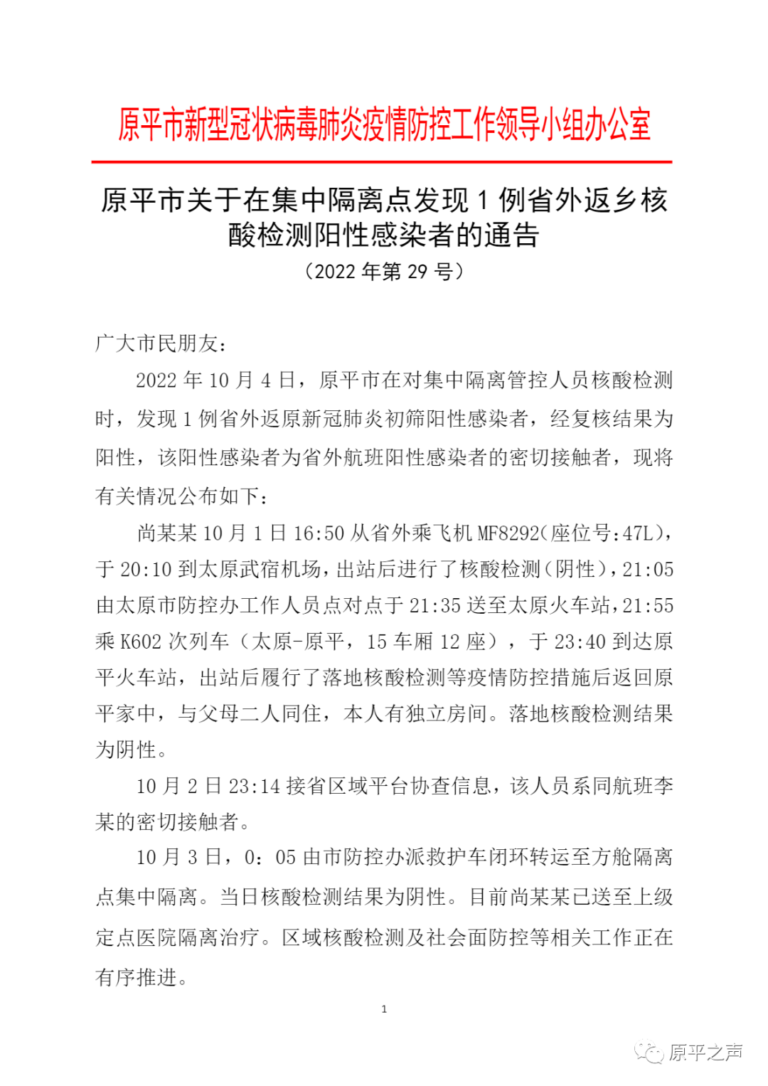 原平市關(guān)于在集中隔離點(diǎn)發(fā)現(xiàn)1例省外返鄉(xiāng)核酸檢測(cè)陽(yáng)性感染者的通告