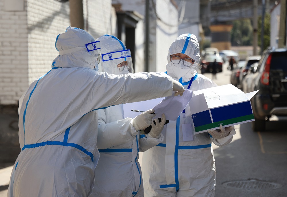 亮明身份,沖鋒在前?!拔沂屈h員,讓我來;哪里任務(wù)重,我就去哪里。”面對這場沒有硝煙的戰(zhàn)爭,全縣111個機關(guān)企事業(yè)單位3897名干部,443名志愿服務(wù)者,195名醫(yī)務(wù)人員,524名政法干警、114名民兵做好自我防護,火速下沉社區(qū)開展核酸采樣、秩序維護、政策宣傳、物資保障等工作,拿出“我是黨員我先上”的行動自覺,加快了核酸檢測采、送、檢、報速度,充實了基層防疫力量。