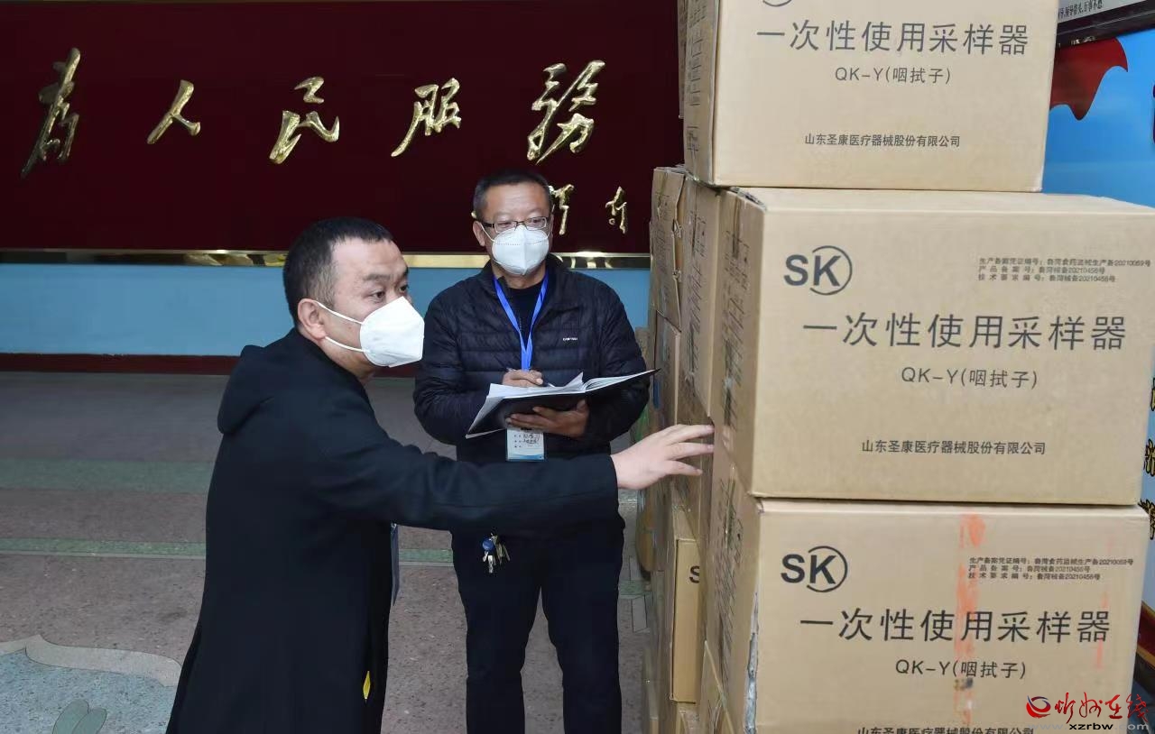 在忻府區(qū)長(zhǎng)征街街道辦事處,工作人員正清點(diǎn)防疫物資。馮曉磊 攝