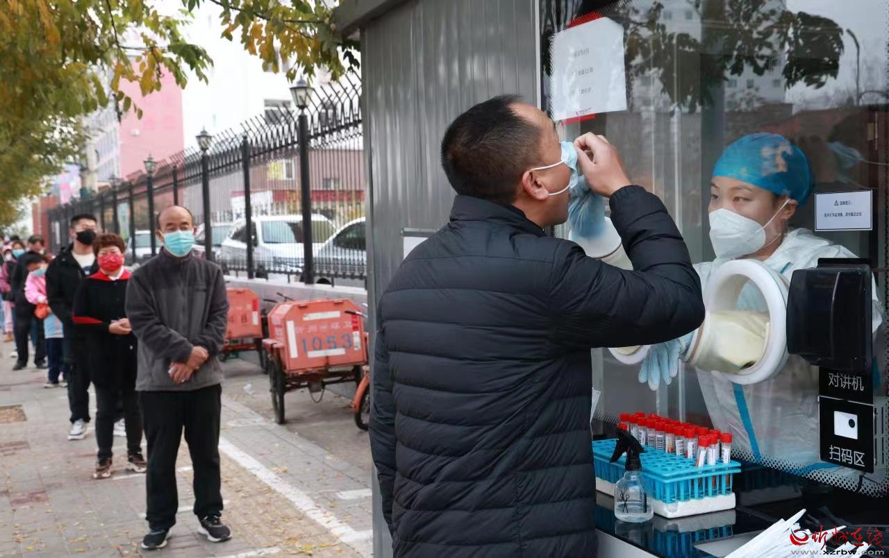 在新建北路核酸檢測(cè)點(diǎn),市民有序采樣。張存良 攝