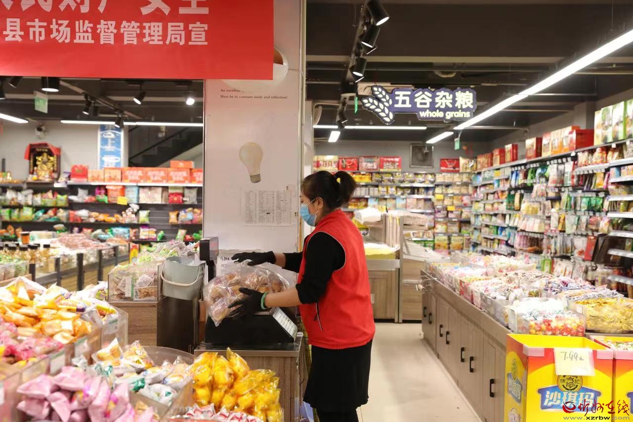 下午3點(diǎn),記者跟隨縣市場(chǎng)監(jiān)督管理局工作人員來(lái)到襄豐超市。一進(jìn)門(mén)便看到二十幾包打包好的外賣(mài)物資擺放在一處,等待快遞小哥上門(mén)取貨。縣市場(chǎng)監(jiān)督管理局工作人員則開(kāi)展動(dòng)態(tài)監(jiān)管,檢查商品質(zhì)量和價(jià)格。