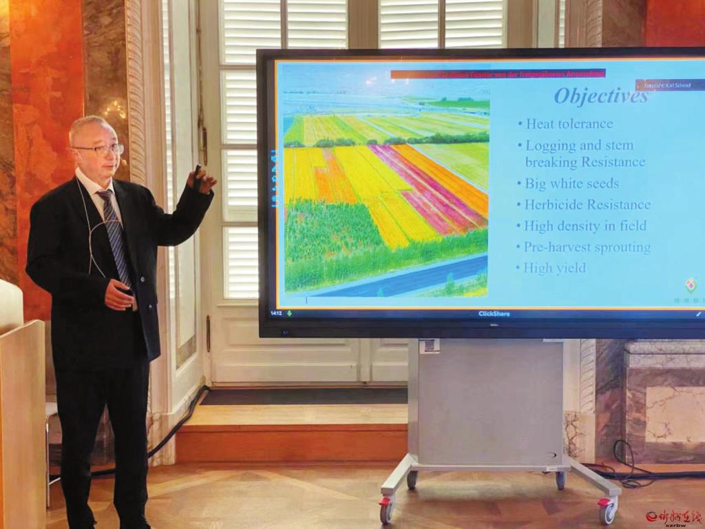 2024 年7 月,武祥云在德國藜麥論壇上發(fā)言。受訪者供圖