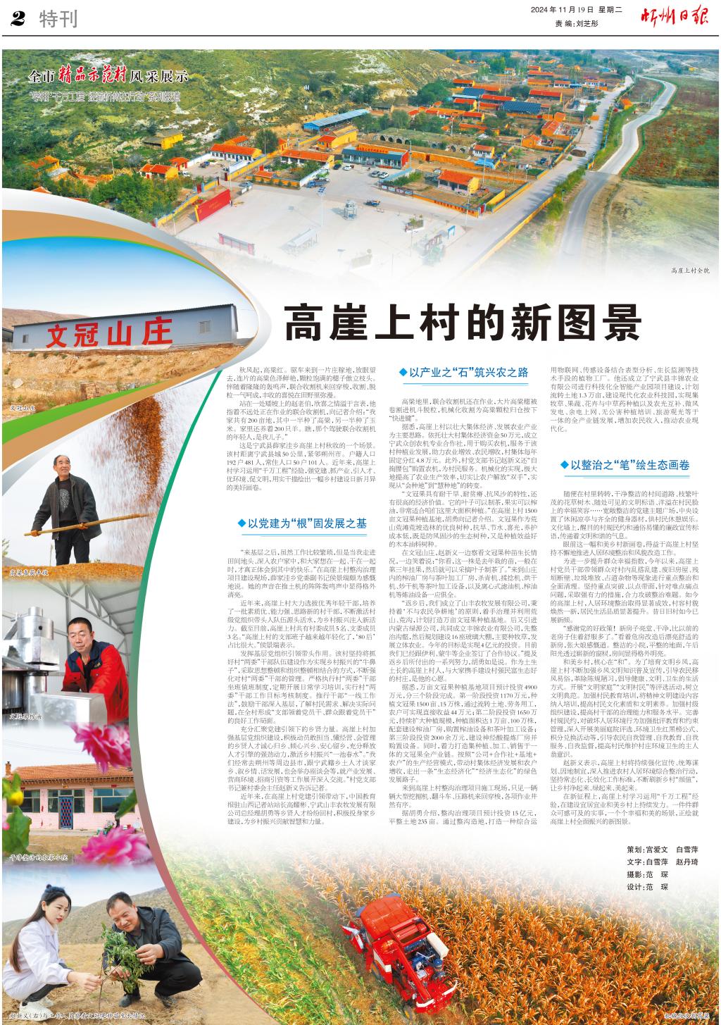 這是寧武縣薛家洼鄉(xiāng)高崖上村秋收的一個場景。該村距離寧武縣城50公里,緊鄰朔州市。戶籍人口192戶481人,常住人口50戶101人。近年來,高崖上村學習運用“千萬工程”經驗,強黨建、抓產業(yè)、引人才、優(yōu)環(huán)境、促文明,用實干描繪出一幅鄉(xiāng)村建設日新月異的美好畫卷。
