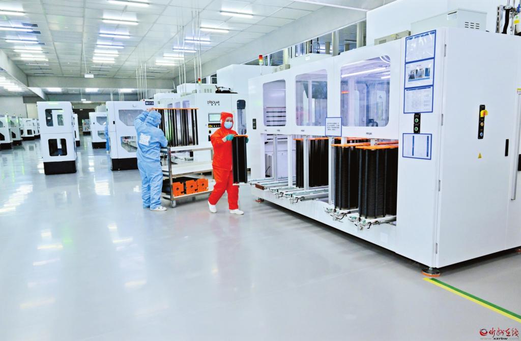 項目于2023年3月投產(chǎn)運營。目前,2號廠房已實現(xiàn)滿產(chǎn),1號廠房設(shè)備安裝調(diào)試已近尾聲,即將投產(chǎn)。項目全面投產(chǎn)達效后,產(chǎn)能達到“50GW電池+50GW組件”,可實現(xiàn)年產(chǎn)值60億元,年上繳稅收3億元,提供就業(yè)崗位1400個。