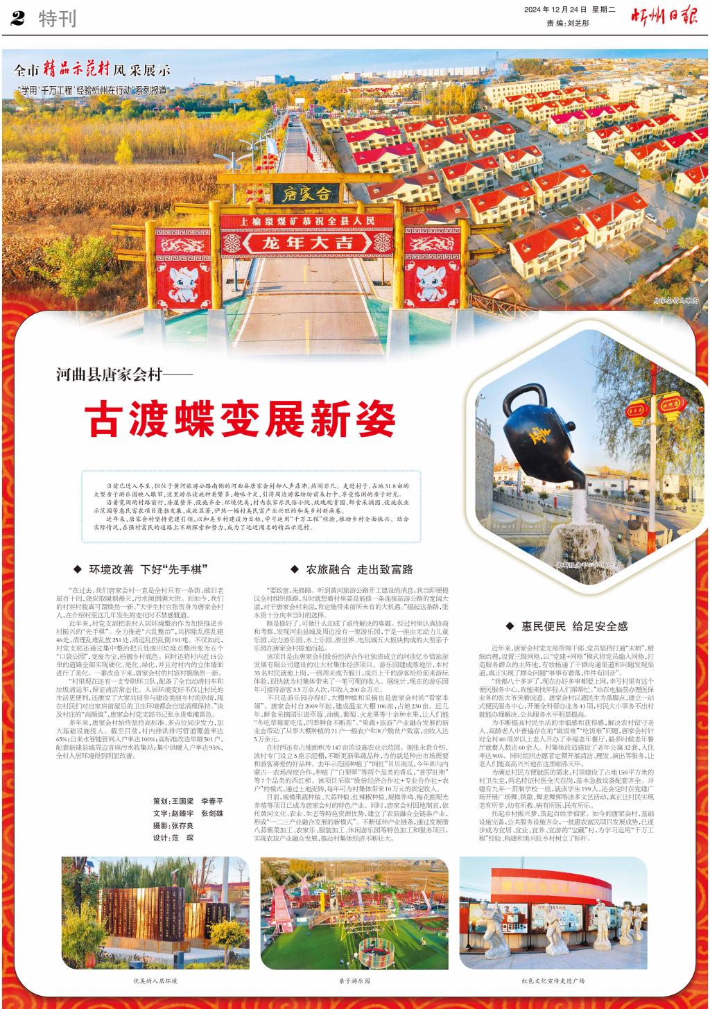 沿著寬闊的村路前行,房屋整齊、設(shè)施齊全、環(huán)境優(yōu)美,村內(nèi)農(nóng)家樂民俗小院、玫瑰觀賞園、鮮食采摘園、設(shè)施農(nóng)業(yè)示范園等惠民富農(nóng)項目蓬勃發(fā)展,成效顯著,儼然一幅村美民富產(chǎn)業(yè)興旺的和美鄉(xiāng)村新畫卷。