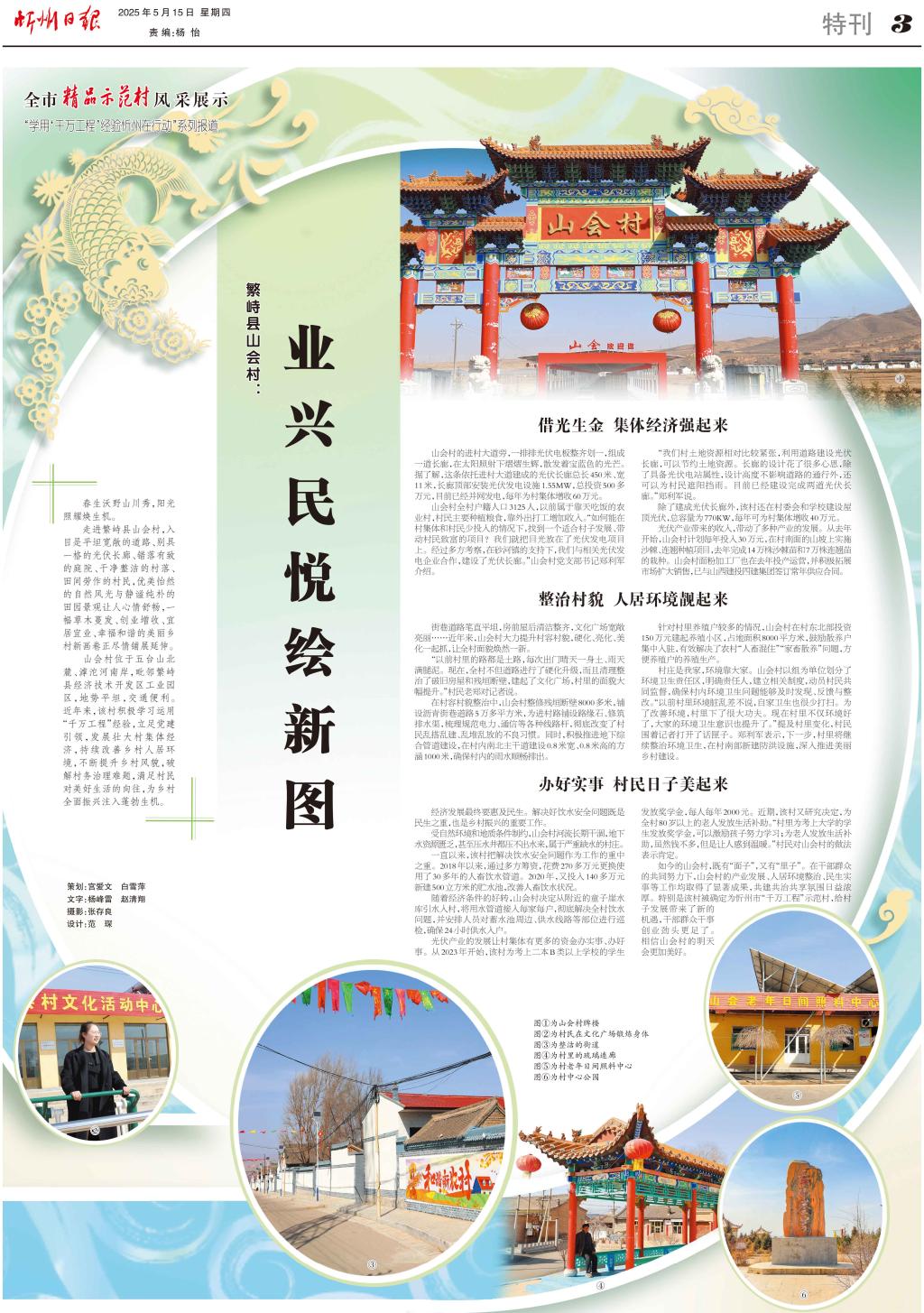 如今的山會村,既有“面子”,又有“里子”。在干部群眾的共同努力下,山會村的產業(yè)發(fā)展、人居環(huán)境整治、民生實事等工作均取得了顯著成果,共建共治共享氛圍日益濃厚。特別是該村被確定為忻州市“千萬工程”示范村,給村子發(fā)展帶來了新的機遇,干部群眾干事創(chuàng)業(yè)勁頭更足了。相信山會村的明天會更加美好。