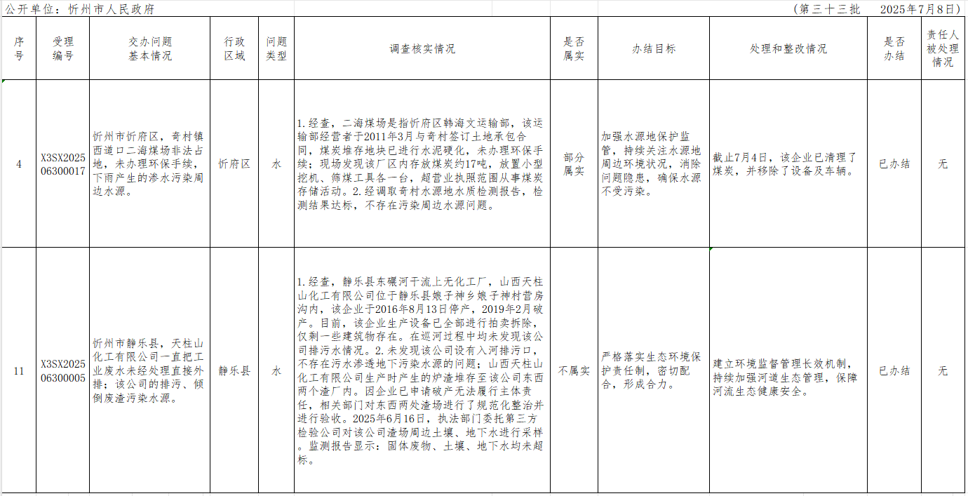 附件【中央生態(tài)環(huán)境保護(hù)督察組群眾信訪舉報(bào)轉(zhuǎn)辦和邊督邊改公開情況一覽表(第三十三批).xlsx已下載