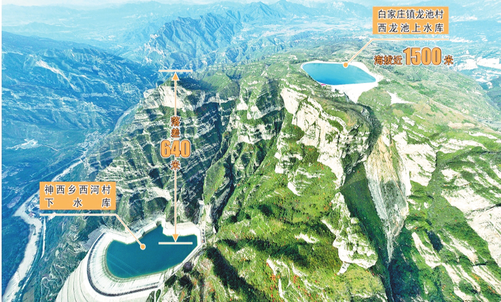 車行50分鐘蜿蜒山路,從神西鄉(xiāng)西河村的下水庫(kù),抵達(dá)海拔近1500米的白家莊鎮(zhèn)龍池村西龍池的上水庫(kù),“天空之池”與“山谷之湖”遙相呼應(yīng),640米的落差讓滹沱河水在群山間完成能量的循環(huán)轉(zhuǎn)換。