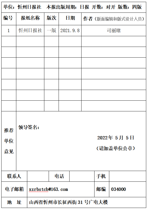 經(jīng)忻州日報社編委會研究決定,以下作品擬推薦申評第三十一屆山西新聞獎,現(xiàn)予以公示。有反對意見者,請將反對意見書面報至統(tǒng)籌部。