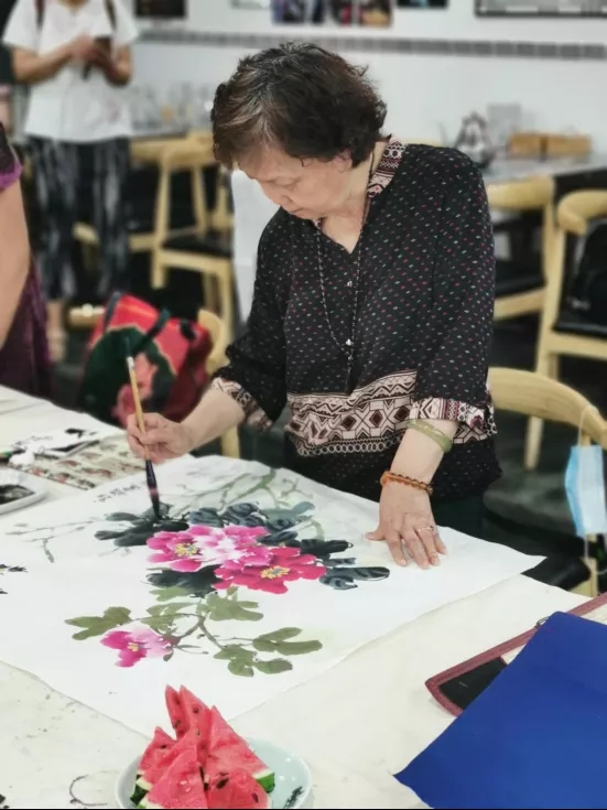 正在學(xué)習(xí)國畫創(chuàng)作的社區(qū)老年人。 求是記者 韓辰 攝