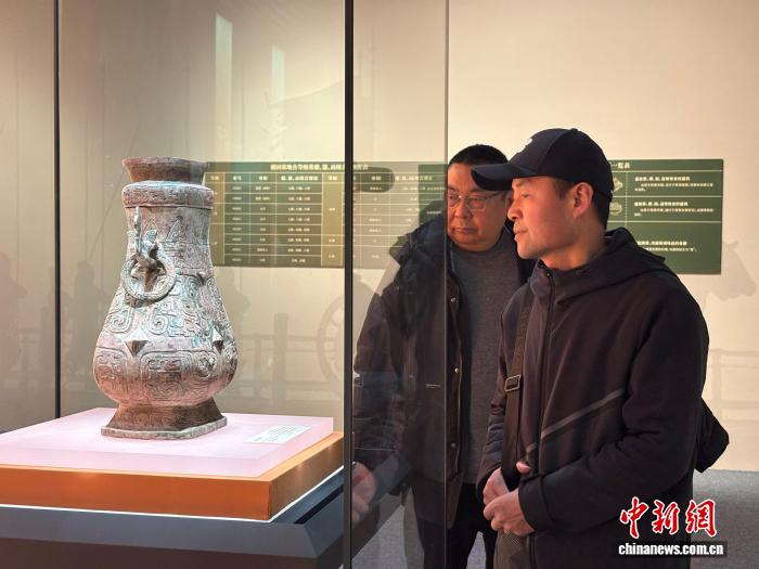 2月10日,游客在安徽博物院參觀“問(wèn)禮——周代虢國(guó)精品文物展”。付敏 攝