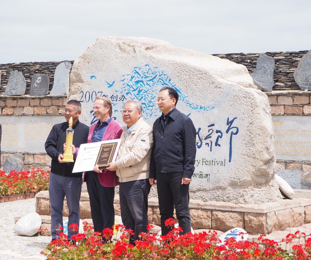 新華社西寧7月2日電(記者白瑪央措)“感謝你們?yōu)檫@個世界構筑一個詩歌的家園,一個可以將所有人的聲音和經(jīng)歷帶入其中的地方。”2023年青海湖詩歌節(jié)“金藏羚羊詩歌獎”獲得者——澳大利亞詩人馬克·特雷尼克手捧藏羚羊造型的獎杯致辭感謝。