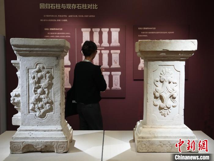 10月13日,“圓明園石柱回歸展暨2023北京公眾考古季”開(kāi)幕式在北京圓明園博物館舉行。展覽集中展示7件圓明園流失石柱文物,均為漢白玉材質(zhì),推測(cè)均來(lái)自西洋樓遺址區(qū)。 記者 崔楠 攝