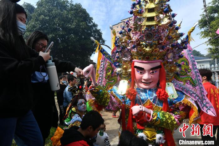 中新網(wǎng)福州2月19日電 (葉秋云)“咚咚咚……”19日上午,一陣陣鑼鼓聲從僑鄉(xiāng)福建省福州市長樂區(qū)潭頭鎮(zhèn)厚福村傳出,一場傳統(tǒng)游神民俗活動在此舉行,來自海內(nèi)外的游客紛紛舉起手機(jī)和相機(jī)拍照留影。
