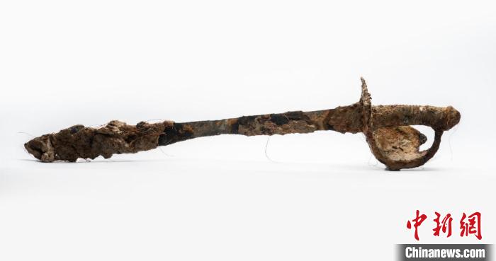 “來(lái)遠(yuǎn)”艦遺址出水的海軍軍刀。山東省水下考古研究中心供圖
