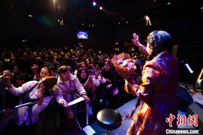 2024年1月,維吾爾族歌唱家賽努拜爾在北京演出,與現(xiàn)場(chǎng)觀眾互動(dòng)。(“戰(zhàn)馬時(shí)代”供圖)