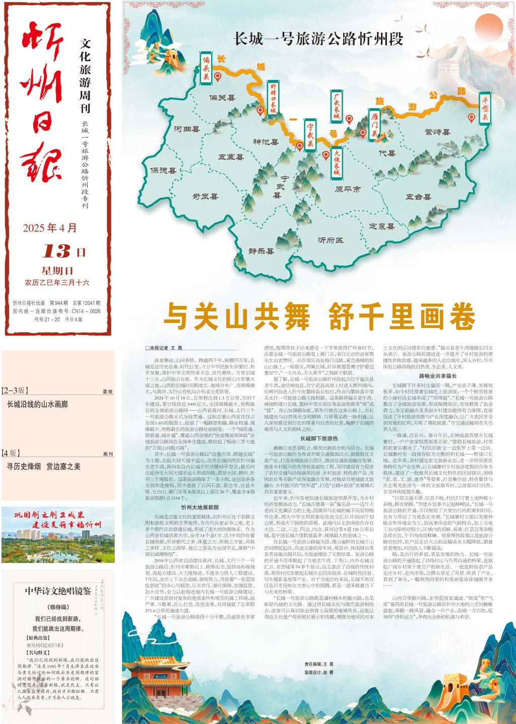 山河萬(wàn)里振興路,宏偉藍(lán)圖變通途?!邦佒怠焙汀皻赓|(zhì)”兼具的長(zhǎng)城一號(hào)旅游公路在忻州大地的山巒間蜿蜒盤(pán)旋,串聯(lián)一路風(fēng)景,融合一片產(chǎn)業(yè),造福一方百姓,延伸向“詩(shī)和遠(yuǎn)方”,孕育出全新的機(jī)遇與希望。(記者 王 晟)