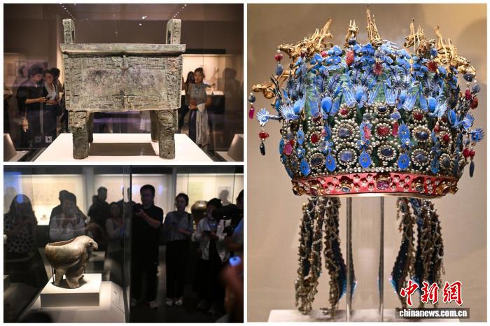 中新網(wǎng)北京7月21日電 (記者 應(yīng)妮)從鷹形陶鼎、紅山文化玉龍、四羊青銅方尊、錯(cuò)金銀云紋青銅犀尊,到擊鼓說(shuō)唱俑、秘色葵口瓷盤(pán)、孝端皇后鳳冠、霽青釉金彩海晏河清尊……“美之道”文化項(xiàng)目于21日在中國(guó)國(guó)家博物館舉行首發(fā)式。
