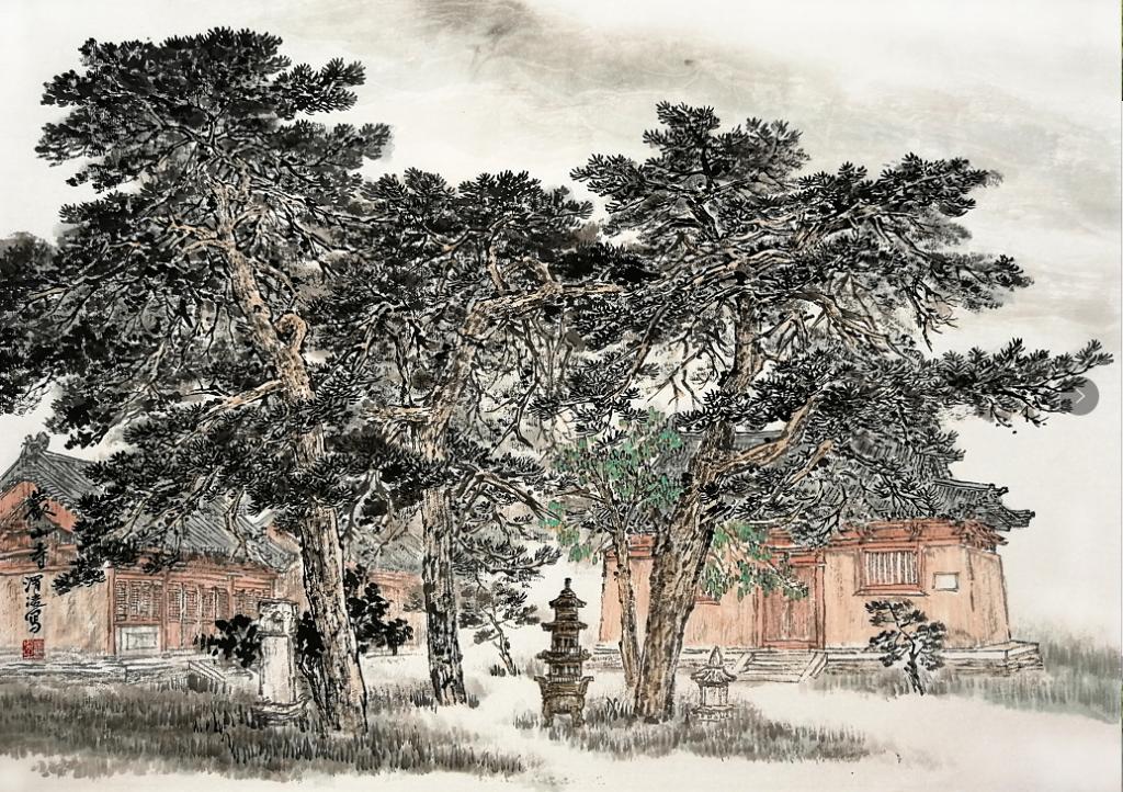 后來因?yàn)樗L畫上取得的成績,調(diào)到了忻府區(qū)文聯(lián)工作。條件好了,畫的畫更多了,畫風(fēng)依然樸實(shí)親切,給人一種視覺的舒適感。這幾年他是在一路前進(jìn)的,他筆下的線條清朗有力,墨色變化也更加豐富,畫中有了渾厚華滋的氣象。細(xì)看他的畫,樸實(shí)中蘊(yùn)藏著精巧,拙拙的行筆中偶露鋒厲,給畫面帶來活力生機(jī)。我們在一起寫生,他在畫面經(jīng)營上、構(gòu)圖處理上總能給人意想不到的驚喜。畫面虛實(shí)處理把握的恰到好處,又能準(zhǔn)確表現(xiàn)自然原貌的神采。于不知不覺中將自己的審美和情感融入了畫中,完成的寫生總比自然景色更加生動、更吸引人的目光,但又讓你看不出他是在哪里做了手腳。