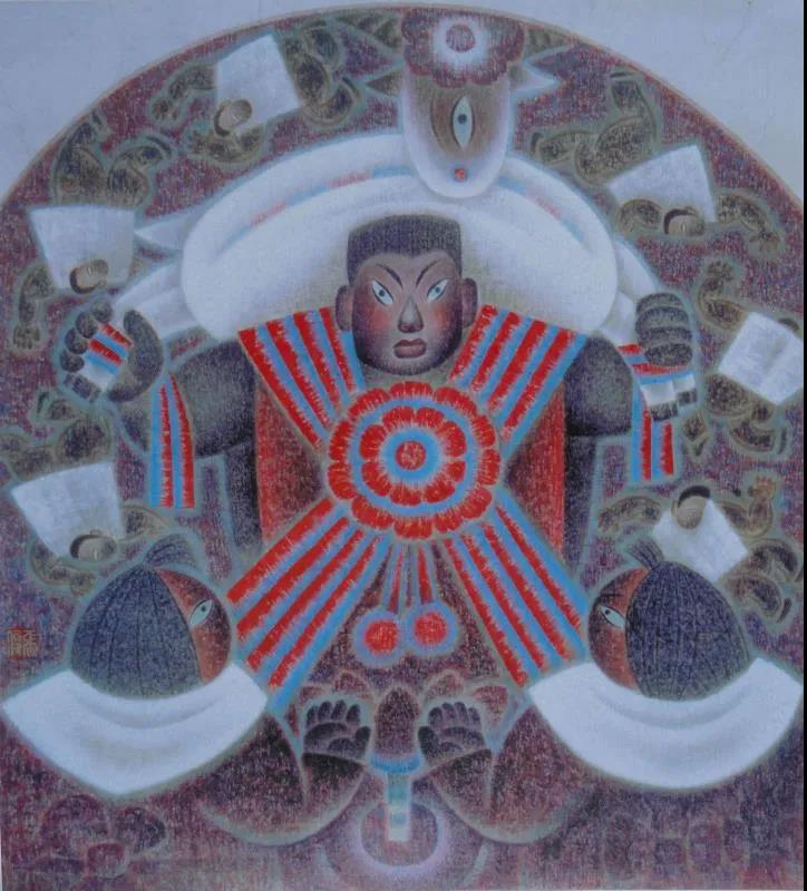 沒(méi)想到張俊畫(huà)的這么好!從前到后越畫(huà)越深入,越有內(nèi)涵,越成熟。吸收的東西很多,民間的、西方的都有,變形很自信,很有意思,美院的人畫(huà)不了。畫(huà)面形式、結(jié)構(gòu)、色彩、造型都很好,可以看出造型功底好,辦法也多。