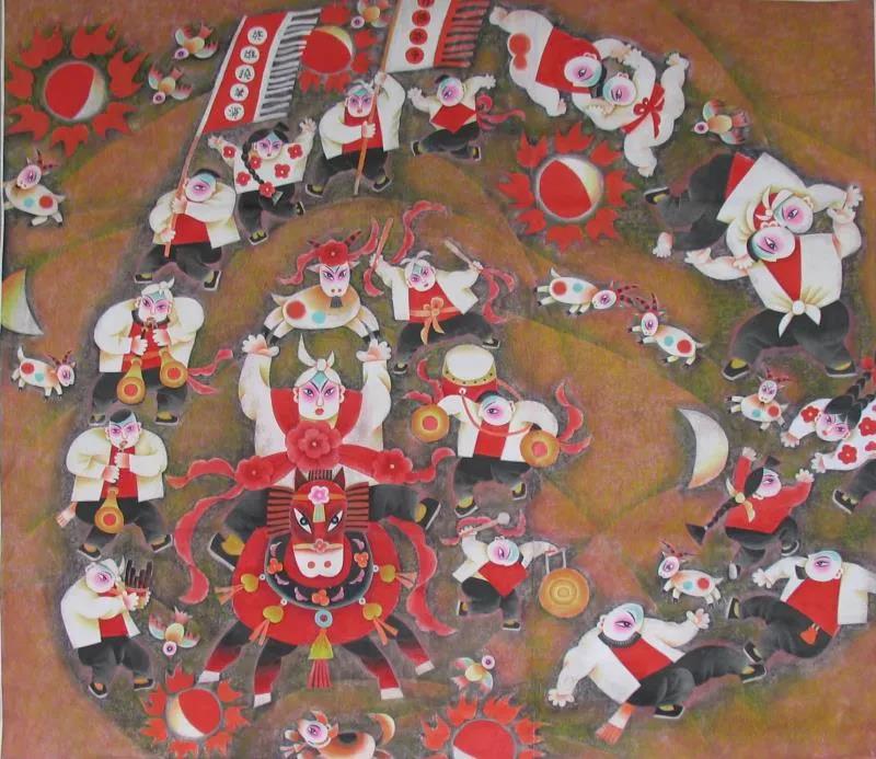 張俊的畫(huà)非常特別,整個(gè)展覽上再找不出這種風(fēng)格,有山西民間藝術(shù)的東西,表現(xiàn)了山西的風(fēng)情,用自己的藝術(shù)語(yǔ)言表現(xiàn)本地域的民情風(fēng)俗是別人比不了的。畫(huà)一批拿出去,在全國(guó)也是獨(dú)特的、能站住腳的。