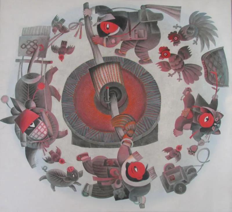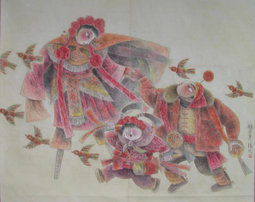 張俊這位畫(huà)家的畫(huà)就很有山西年畫(huà)的特點(diǎn),又吸收了山西民間藝術(shù)的東西,很有特色。這不光在其他省很少見(jiàn),就是放到全國(guó)的展覽上也很少見(jiàn)。共性中的個(gè)性就是藝術(shù)。