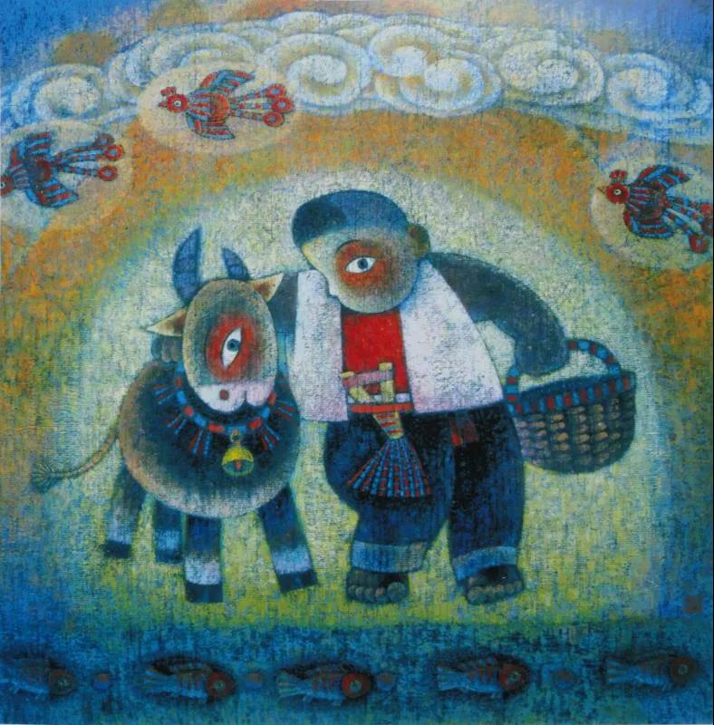 1973年開(kāi)始自學(xué)美術(shù)并業(yè)余創(chuàng)作,專(zhuān)國(guó)畫(huà)兼及水粉、漫畫(huà)、剪紙。數(shù)十年來(lái)廣采博收,上溯遠(yuǎn)古巖畫(huà)、畫(huà)像磚、石、帛畫(huà)、洞窟壁畫(huà)、院體工筆以及民間剪紙、泥塑,面塑、年畫(huà);橫向上油畫(huà)、版畫(huà)、裝飾、現(xiàn)代設(shè)計(jì)乃至西方藝術(shù)皆有涉獵吸收,融匯貫通,形成了一種既富傳統(tǒng)民族特色、鄉(xiāng)土味濃郁,又極具現(xiàn)代感的、自成一格的個(gè)人風(fēng)格。