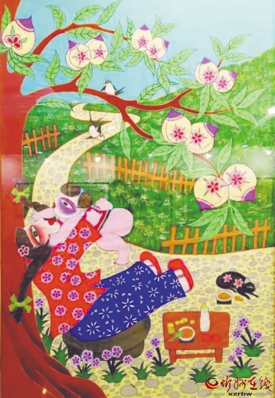 炕圍畫又稱“墻圍畫”,是一種中國(guó)民間常見的室內(nèi)裝飾畫。忻州處于高寒地帶,在農(nóng)村家家戶戶都用火炕取暖御寒,炕上的墻面極易脫落起皮,蹭臟衣物被褥。于是人們以刷墻所用的白土調(diào)以膠水,在環(huán)炕的墻上涂高約二尺的“圍子”,既保護(hù)了墻面,又使人們免遭臟衣污物之累。后來(lái),炕圍畫逐漸發(fā)展為以顏料做底、色彩畫花、桐油涂罩,既鮮艷明亮,又堅(jiān)固耐久。日常臟污了,用濕布擦拭,則又光亮如新。