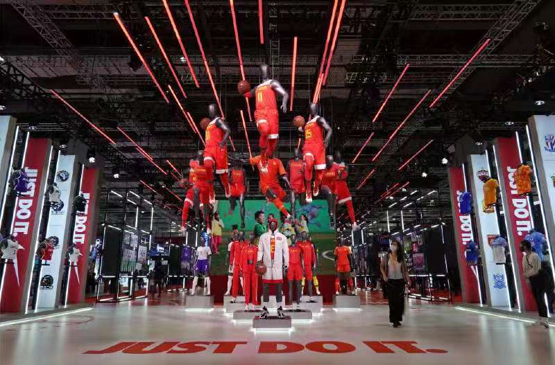 這是11月7日在進(jìn)博會(huì)消費(fèi)品展區(qū)拍攝的耐克展臺(tái)。新華社記者 李任滋 攝