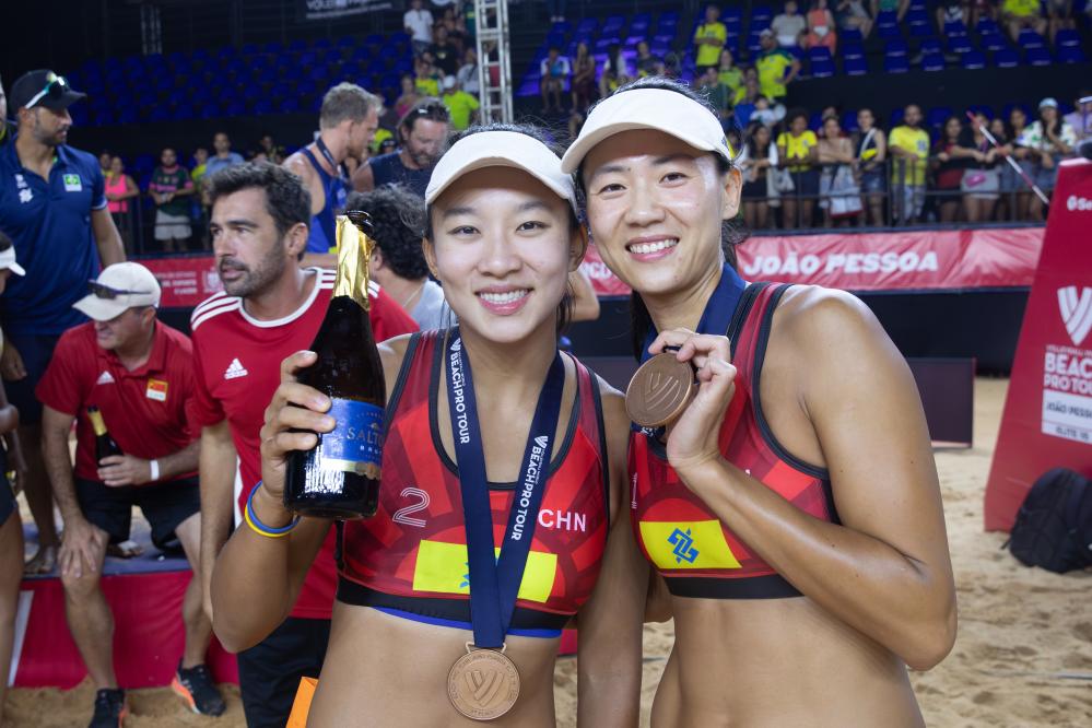 新華社巴西若昂佩索阿11月26日電(記者趙焱)中國(guó)沙灘排球選手薛晨/夏欣怡26日在巴西舉行的世界沙灘排球巡回賽若昂佩索阿精英賽中以2:1戰(zhàn)勝美國(guó)組合努斯/克洛特,獲得季軍;巴西選手安娜·帕特里夏/杜達(dá)獲得冠軍。